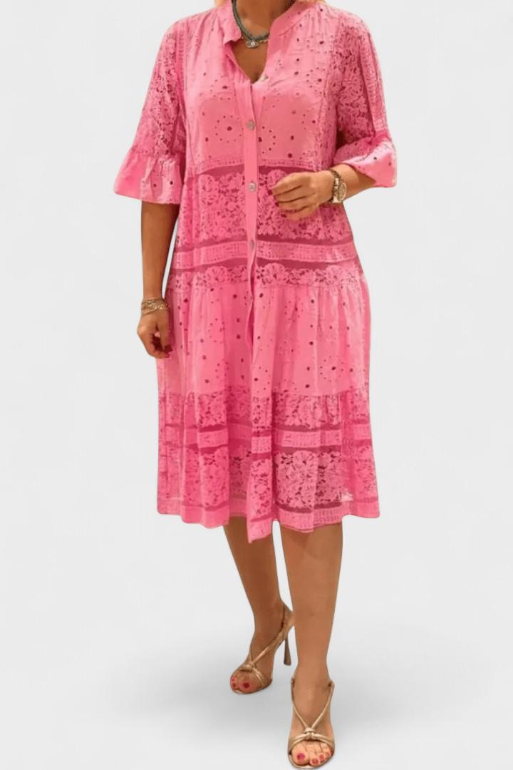 • 3/4-lange blondeærmer og en diskret krave skaber et romantisk, moderne look.