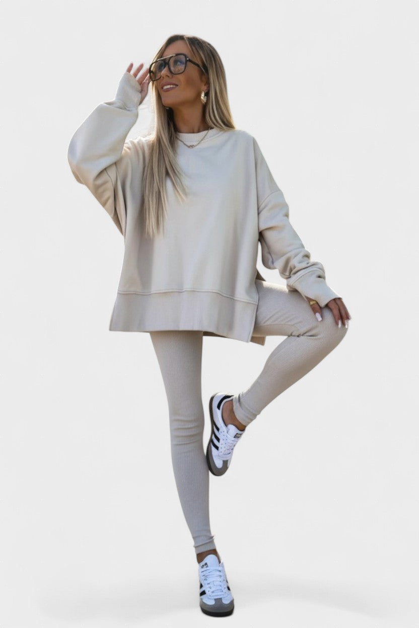 Slap af med stil med Liv™, et sæt med lange ærmer designet til dem, der værdsætter både afslapning og elegant design. Dette alsidige sæt kombinerer hyggelig komfort med en uformelt sofistikeret stil, hvilket gør det til det ideelle valg til uformelle udflugter og afslappede dage derhjemme.